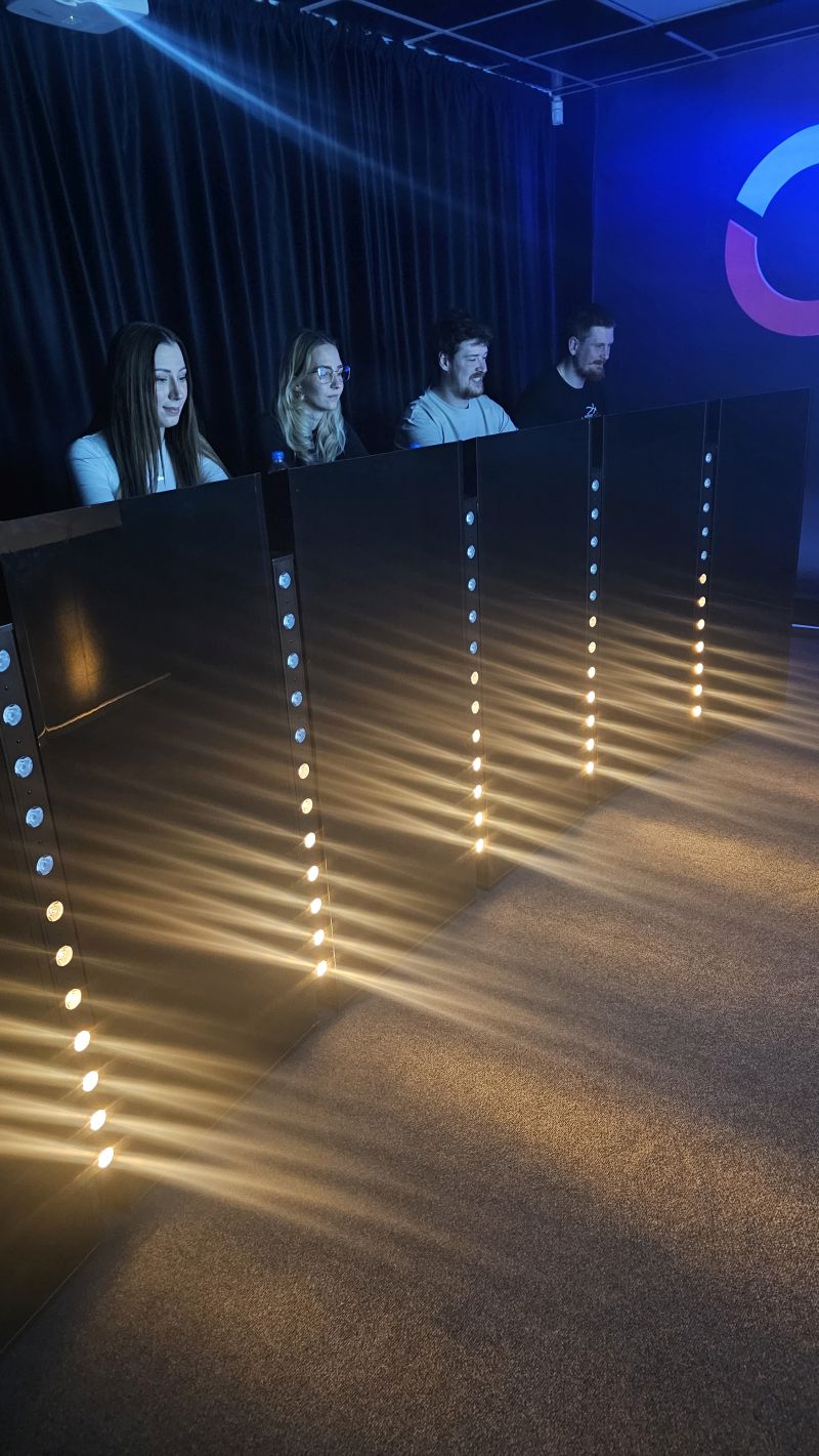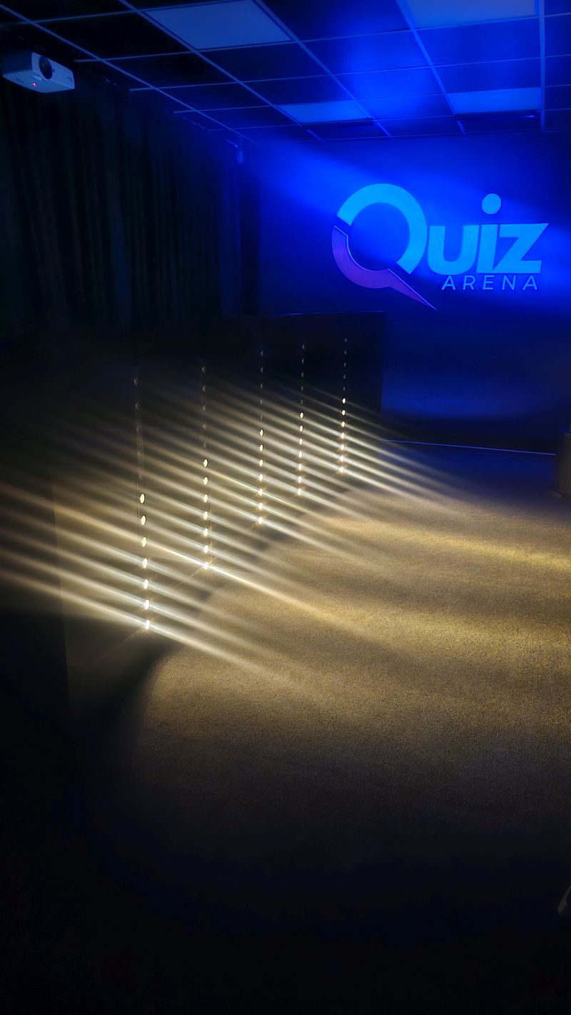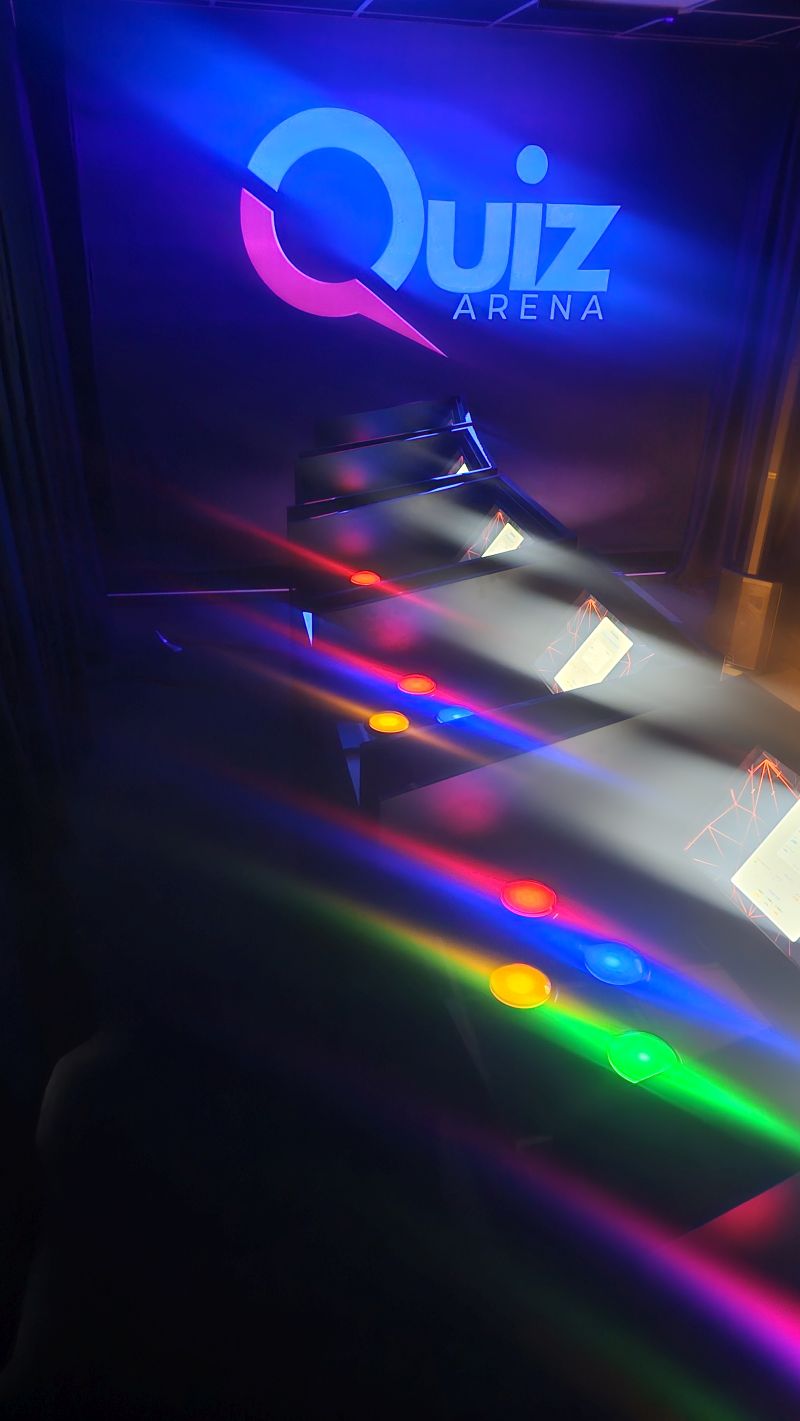 - QUIZ Arena je doplnená o zvukové a svetelné efekty, aby simulovala televíznu show.